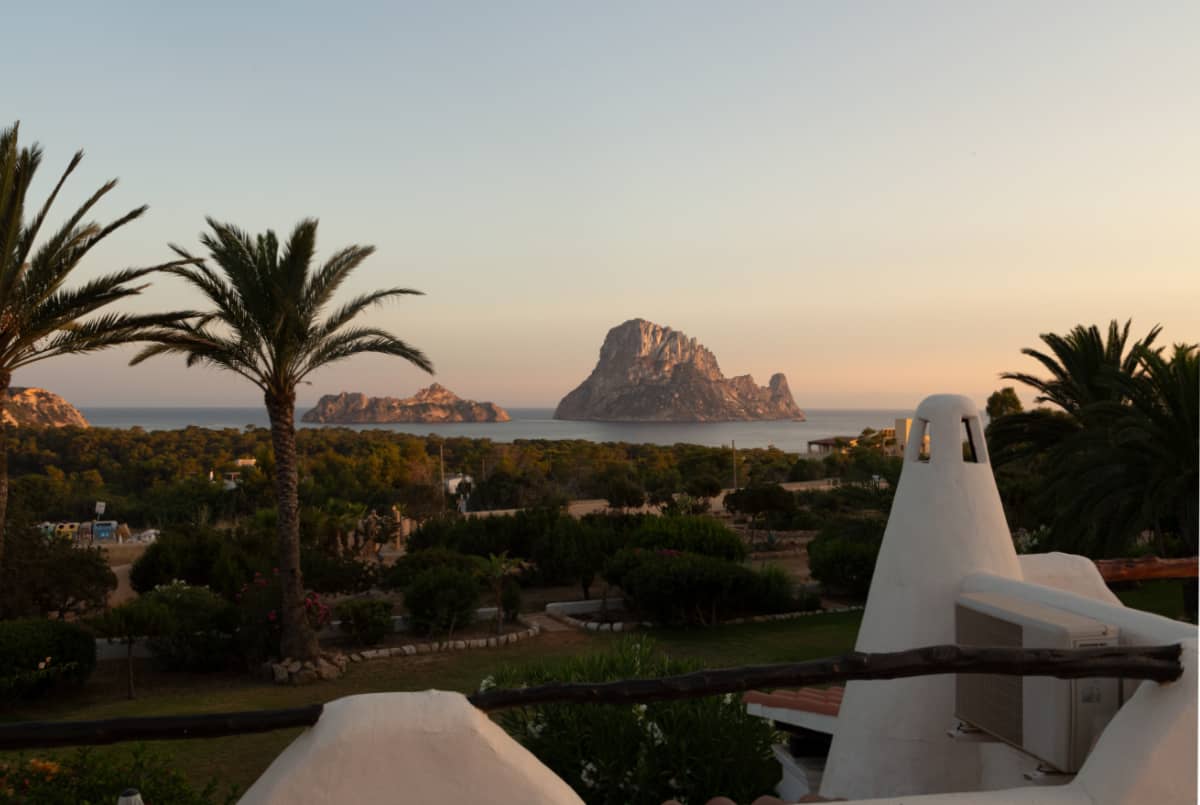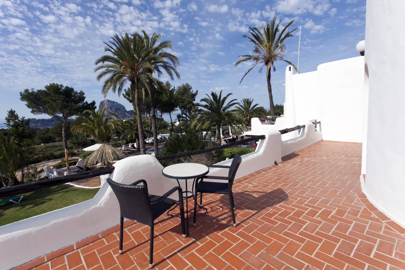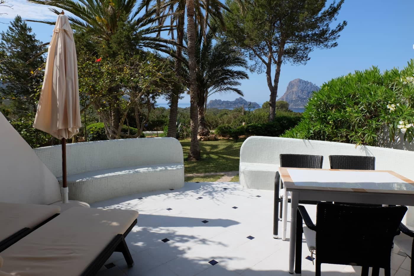 Todos nuestros apartamentos y estudios (excepto los estudios economy) tienen terrazas con vistas al mar, están frente a la mágica isla de Es Vedrá, el punto de referencia de Ibiza, y todos están equipados con aire acondicionado.