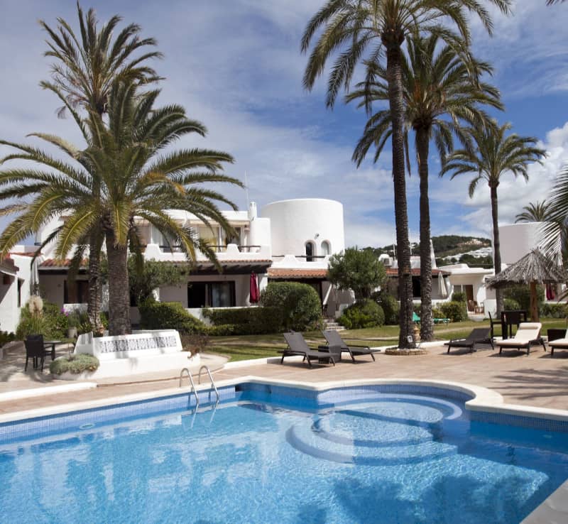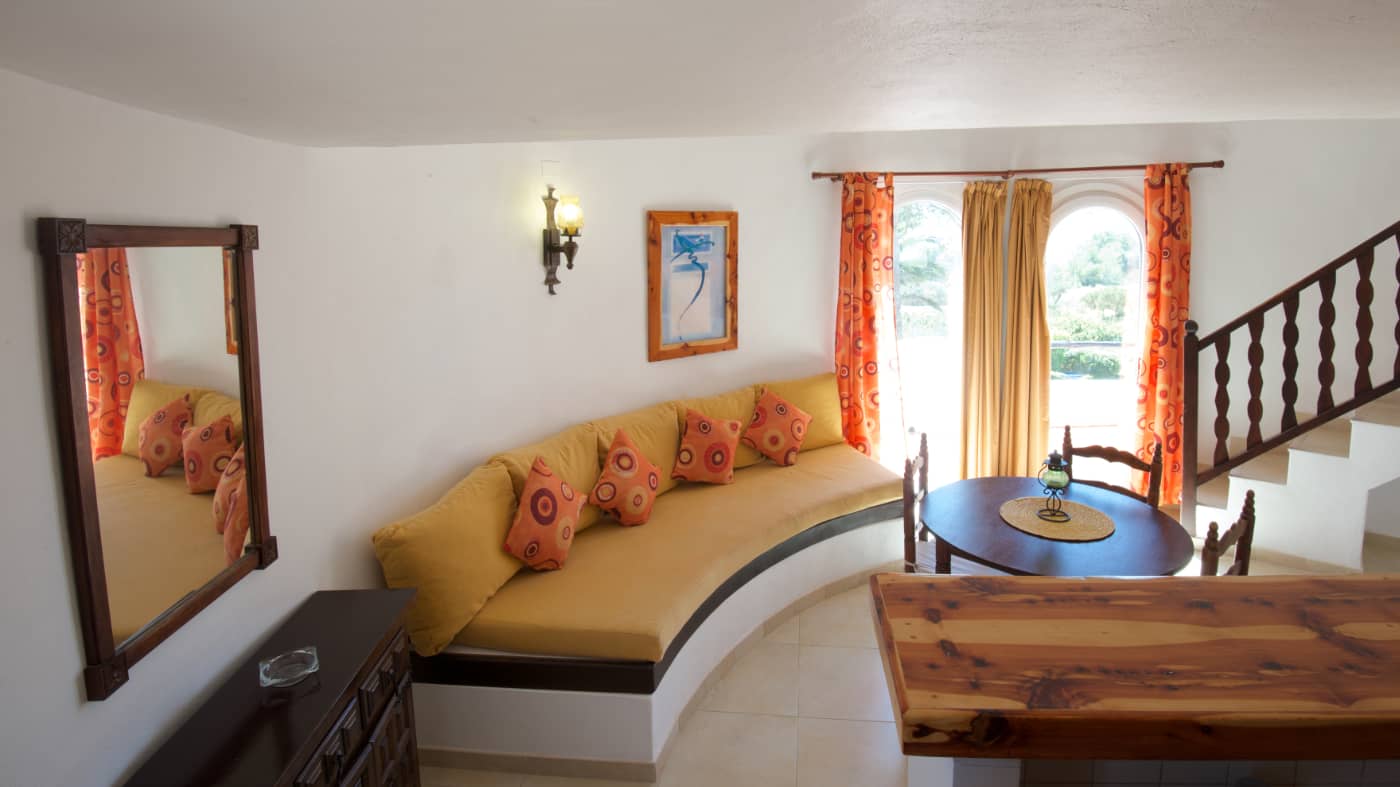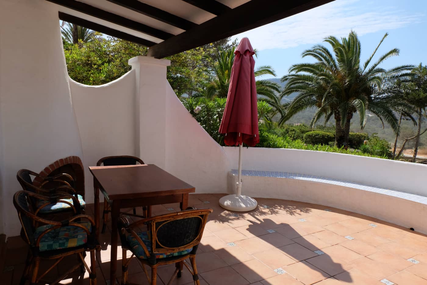 Todos nuestros apartamentos y estudios (excepto los estudios economy) tienen terrazas con vistas al mar, están frente a la mágica isla de Es Vedrá, el punto de referencia de Ibiza, y todos están equipados con aire acondicionado.