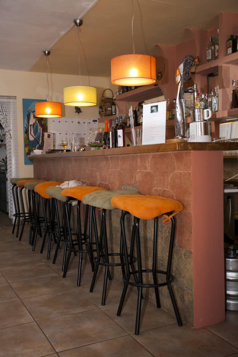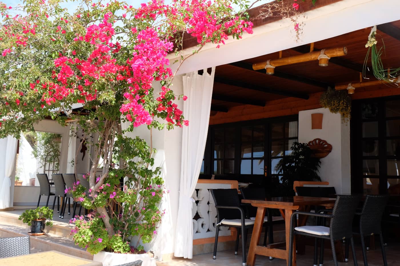 ofrece un rico desayuno buffet y una gran selección de deliciosos platos mediterráneos en el menú de la noche y una pequeña selección en el menú del almuerzo (ambos sólo en la temporada de verano), una pequeña pero fina selección de vinos españoles y cócteles, por supuesto, también en el bar.